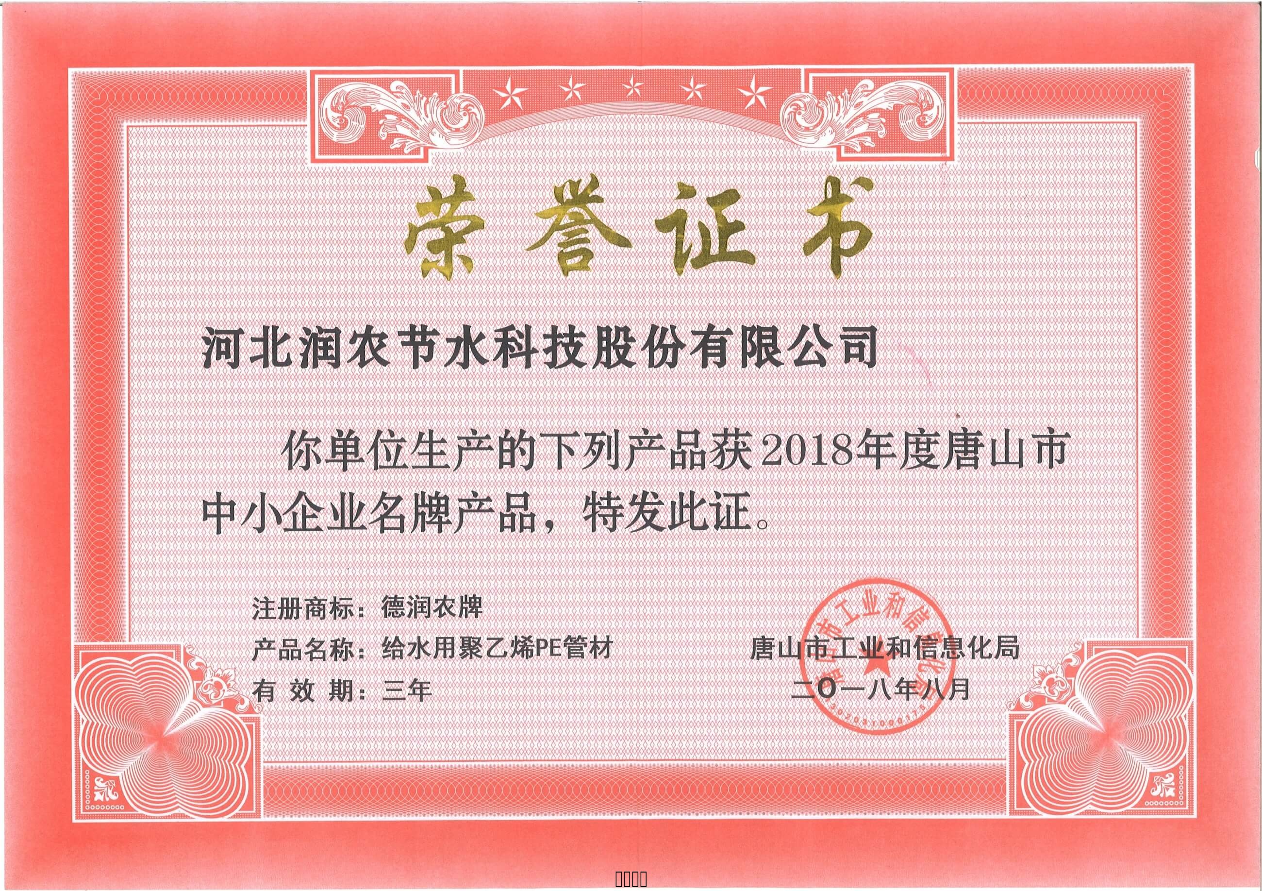 唐山市在中小企業名牌產品給水用聚乙烯PE管材